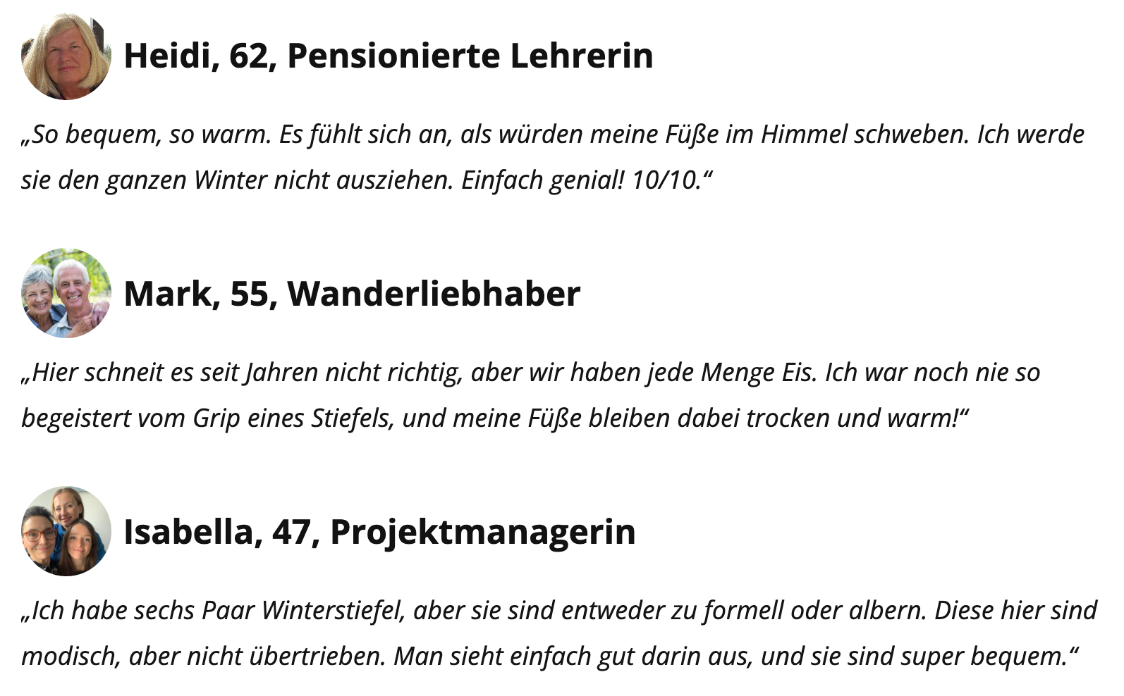 Um es kurz zu machen, hier ist eine übersichtliche Liste der Gründe, warum Fußfit®-Winterstiefel die besten Winterstiefel auf dem Markt sind: